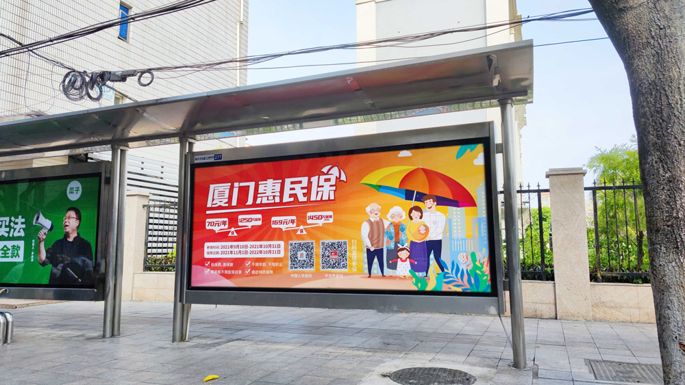 目前“惠民保”在全廈門(mén)市島內(nèi)外各個(gè)主干道及主干道交叉口、黃金的人流車流途徑處、居民生活住宅區(qū)等路段投放多個(gè)城市路名牌、公交車候車亭。